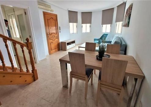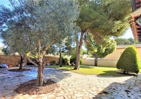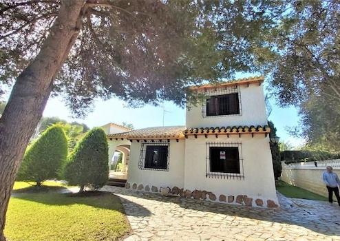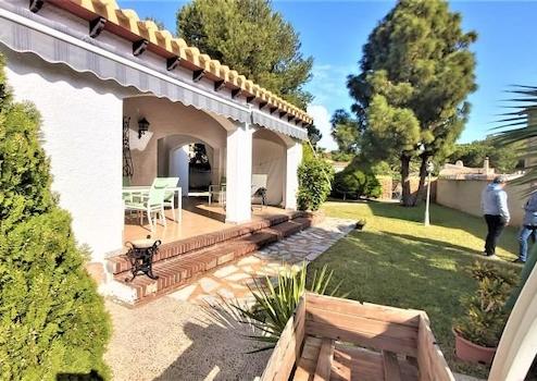 Freistehende Villa im mediterranen Stil in der ruhigen Wohngegend von Punta Prima, 300 m vom Strand, 1,5 km vom Einkaufszentrum Zenia Boulevard, 3 km von den Golfplätzen von Orihuela Costa und 3 km von der Stadt Torrevieja entfernt.