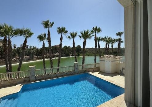 Freistehende Villa der Luxusklasse mit privatem Pool, Garage und herrlicher Aussicht mit Palmen, dem Teich und dem Golfplatz direkt vor der Tür.