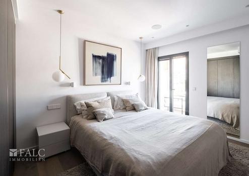 Dieses fabelhafte Penthouse in San Agustin, das im Jahr 2024 komplett renoviert wurde, befindet sich in erster Linie zum Meer in einer der exklusivsten und luxuriösesten Lagen Mallorcas - Calanova Marina. Die Immobilie bietet eine Wohnfläche von ca. 105 m2, einen einzigartigen Panoramablick auf den Hafen und das Meer von jedem Winkel der Wohnung aus und eine wunderbare private Dachterrasse von ca. 17 m2 mit Grillplatz, einer kleinen Aussenküche und atemberaubender Aussicht. Die Innenausstattung dieses mediterranen Juwels besteht aus den besten Materialien und den edelsten Marken. Das lichtvolle Apartment besteht aus 2 Schlafzimmern und 2 Bädern, eines davon en suite. Eines der Schlafzimmer hat eine eigene Terrasse mit Blick auf den Hafen von Cala Nova und genug Platz, um 2 Stühle mit einem Tisch für Ihren Morgenkaffee aufzustellen. Das schöne Wohn-/Esszimmer bietet einen Panoramablick auf das Meer und den Hafen und die fantastische offene Küche ist komplett mit hochwertigen Haushaltsgeräten ausgestattet. Die Immobilie befindet sich in einer sehr gepflegten Wohnanlage mit Gemeinschaftspool und Gemeinschaftsgärten.