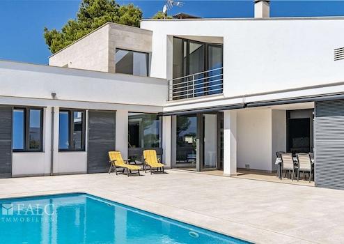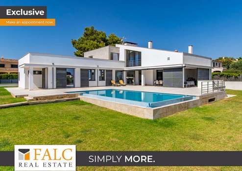 Moderne Villa umgeben von Naturrasen mit Pool und Garage in Marratxi