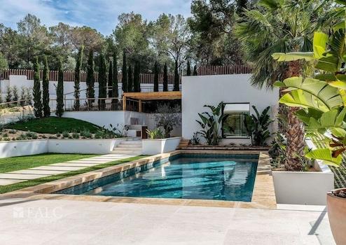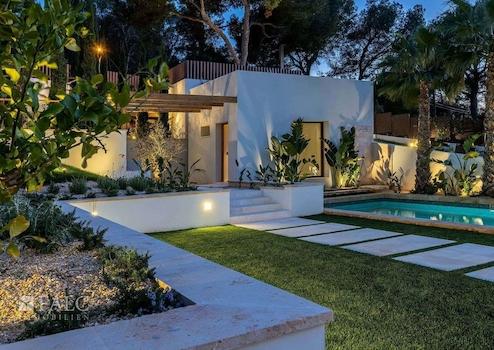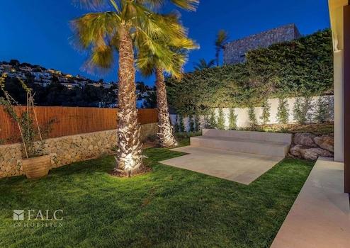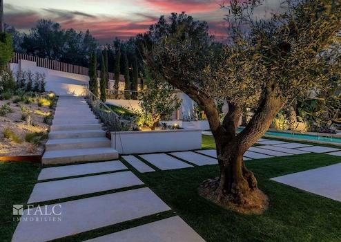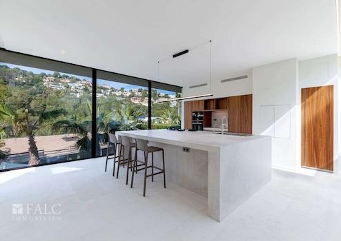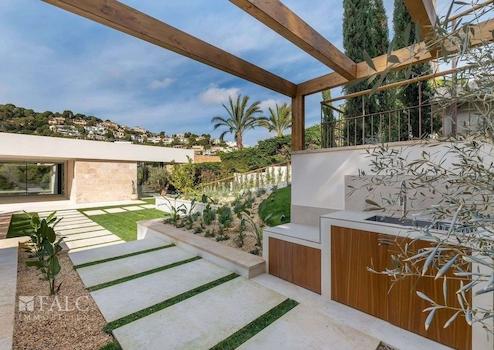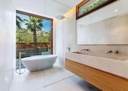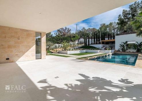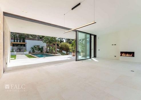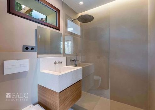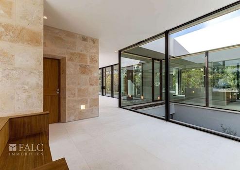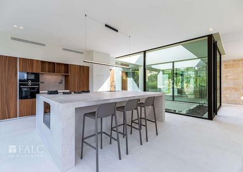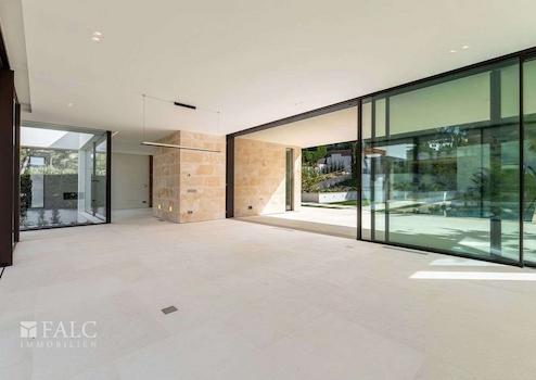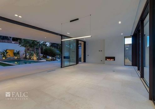 Diese fabelhafte, Neubau-Villa in Bendinat zeichnet sich durch hochwertige Materialien, mediterranes Design mit Gästewohnung, Sauna und Fitnessraum aus. Das Objekt ist auf zwei Etagen aufgeteilt und verfügt über 4 Schlafzimmer, 6 Badezimmer (jedes Schlafzimmer mit eigenem Bad, Gästebad) sowie eine Gästewohnung mit eigenem Bad. Erbaut auf einem Hanggrundstück von ca. 1.117 m2, ist die Immobilie so konzipiert, dass der Zugang von der Strasse aus erfolgt und sich der Wohnbereich auf der oberen Ebene befindet. Vom Eingang und dem Flur gelangt man in den Essbereich und die moderne Küche, die sich an ein gemütliches Wohnzimmer anschliesst. Von der Küche und dem Essbereich aus überblickt man den mediterranen Garten und den beeindruckenden 12m x 4m grossen Swimmingpool. Jenseits des Pools befindet sich die separate Gästeunterkunft und eine Aussenküche. Über die Treppe gelangt man ins Erdgeschoss, wo sich eine Bibliothek befindet, die zu den 4 Schlafzimmern mit eigenem Bad führt - die Master-Suite hat einen herrlichen Blick auf das Tal und einen privaten Garten, der von der Terrasse aus zugänglich ist. Darüber hinaus gibt es ein Heimkino und ein Gästebad. Im Untergeschoss befinden sich ein Fitnessraum und eine Sauna, ein zweites Badezimmer für den Fitnessraum, ein Maschinenraum und eine Garage mit Platz für 3 Fahrzeuge. Zudem gibt es einen Lastenaufzug, der das Untergeschoss mit dem Rest des Hauses verbindet. Extras: Fussbodenheizung, Klimaanlage, doppelt verglaste Fenster, Kamin, Garage und vieles mehr.