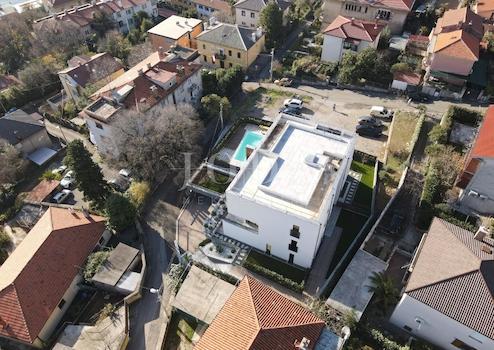 Zum Verkauf steht eine luxuriöse Drei-Zimmer-Wohnung in einem neuen Gebäude, im 2. Stock, ein Penthouse mit einer Dachterrasse mit Grünflächen, orientiert Südost - Südwest. Die Wohnung befindet sich in einem Gebäude mit einem Aufzug, und im Untergeschoss gibt es eine Garage mit zwei Parkplätzen. Das Wohnzimmer ist mit einer nach Süden ausgerichteten Terrasse verbunden.