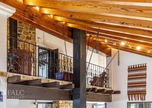 Zur Ausstattung zählen unter anderem doppelt verglaste Aluminiumfenster, Fensterbänke aus Holz, Einbauschränke, traditionelle Terrakotta-Fliesen, Holzbalkendecken, Natursteinverkleidung, Gaszentralheizung, vorinstallierte Klimaanlage, Videoalarmanlage mit Gegensprechanlage, Markisen, ein elektrisches Zufahrtstor und vieles mehr. Auf dem Grundstück stehen zudem mindestens zehn Außenstellplätze zur Verfügung.
