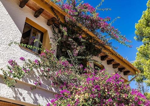 Die sonnige, renovierte Immobilie steht auf einem ca. 1.733 m² großen Grundstück und teilt sich in ein Haupthaus sowie einen separaten Gästetrakt auf. Das Haupthaus verfügt über drei Schlafzimmer mit Badezimmern en Suite, während der Gästetrakt zwei weitere Schlafzimmer – jeweils mit privatem Badezimmer – bietet.