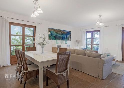 Die Wohnbereiche sind offen und luftig gestaltet, mit großen Fenstern, die das Licht einfangen und den Blick auf den liebevoll angelegten Garten freigeben. Der mediterrane Stil zieht sich durch alle Räume – von den geschmackvollen Fliesen bis hin zu den Naturholzelementen, die ein Gefühl von Geborgenheit vermitteln.