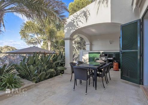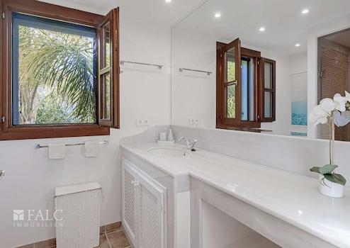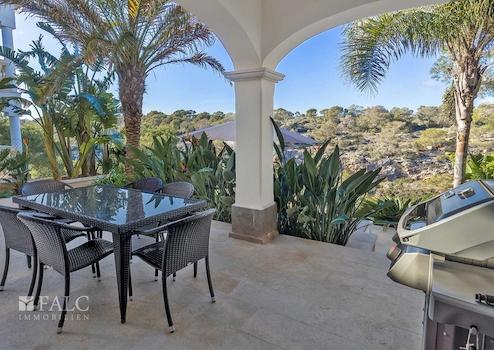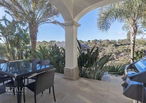 Drei Terrassen verteilen sich harmonisch über das Grundstück und schaffen sonnige und schattige Wohlfühloasen. Der Whirlpool mit Fernblick, ganz ohne Chemikalien beheizt, lädt zu Wellnessmomenten bei bis zu 28 Grad ein. Der komplett neu gestaltete tropische Garten mit Palmen, automatischer Bewässerung, neuen Pflanzen und beleuchtetem Gehweg verwandelt das Grundstück bei Nacht in ein mediterranes Paradies.