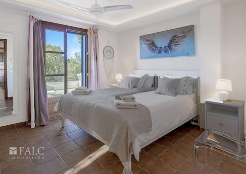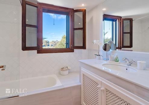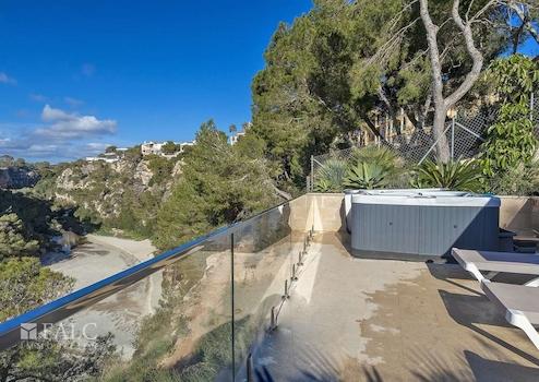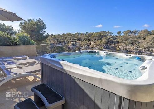 Ob Frühstück im sonnendurchfluteten Essbereich oder ein entspannter Abend auf einer der drei Terrassen: Dieses Zuhause bietet Raum zum Durchatmen, Träumen und Genießen. Besonders spektakulär ist die großzügige Sonnenterrasse mit privatem Whirlpool – hier erleben Sie nicht nur vollkommene Entspannung, sondern auch einen atemberaubenden 200-Grad-Meerblick über die traumhafte Bucht von Cala Pi.