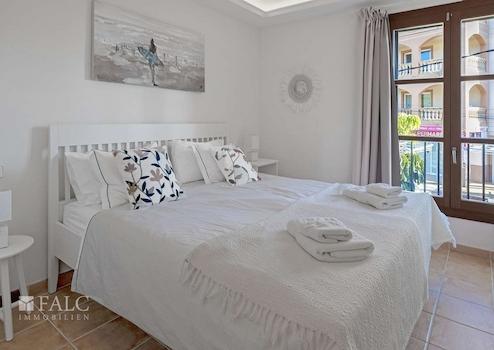 Das Hauptschlafzimmer mit privatem Balkon, Meerblick und Bad en suite verspricht Rückzug mit Stil. Alle drei Schlafzimmer sind mit Klimaanlagen, Doppelverglasung mit Moskitonetzen, Einbauschränken, Deckenventilatoren und SMART-TVs ausgestattet – perfekt für entspannte Nächte.