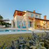 Auf einem sanften Hügel mit Blick auf das historische Zentrum von Sveti Lovreč gelegen, verbindet diese elegante Villa traditionellen istrischen Charme mit modernem Komfort. Sie bietet 210 m² einladende Wohnfläche, darunter ein warm gestaltetes Wohnzimmer, eine vollständig ausgestattete Küche mit Essbereich, drei behagliche Schlafzimmer und zwei hochwertig ausgestattete Badezimmer. Natürliche Materialien und mediterrane Texturen prägen den Innenraum und unterstreichen seine authentische Atmosphäre.