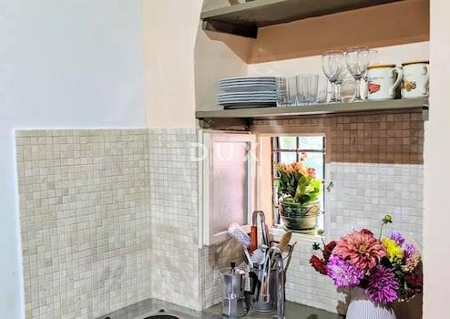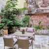 Der 40 m² große Garten/die Veranda, im mediterranen Stil mit Steinpflaster und einer alten Zisterne gestaltet, bietet einen intimen und einzigartigen Außenbereich – ideal zum Entspannen, geselligen Beisammensein oder um die Ruhe der Altstadt zu genießen.