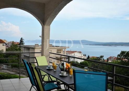 Dieses freistehende Apartmenthaus in einer der begehrtesten Lagen von Crikvenica, nur 250 m vom Meer entfernt, stellt eine seltene Investitionsmöglichkeit mit insgesamt acht modern ausgestatteten und vollständig renovierten Wohneinheiten dar. Die Immobilie befindet sich auf einem 759 m² großen Grundstück und bietet 602 m² Wohnfläche, verteilt auf das Erdgeschoss, zwei Obergeschosse und ein ausgebautes Dachgeschoss, ergänzt durch einen gepflegten Außenbereich und einen offenen Panoramablick auf das Meer.