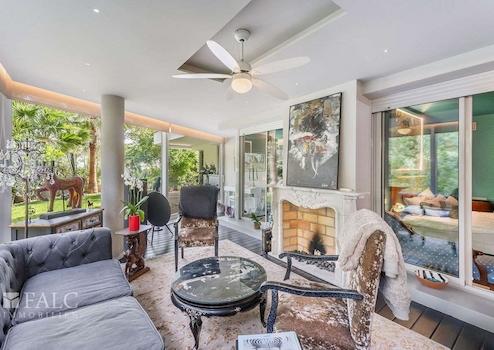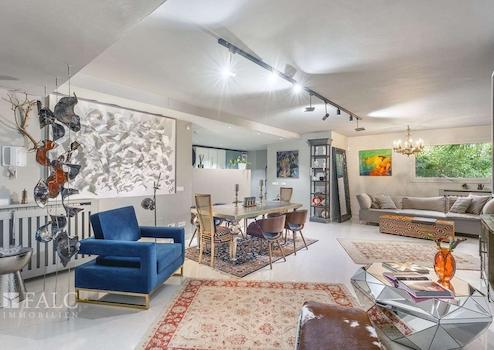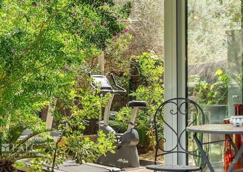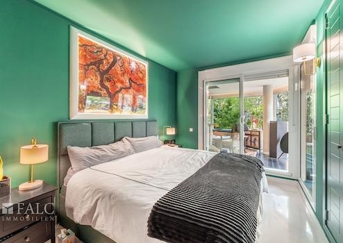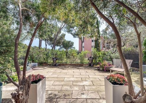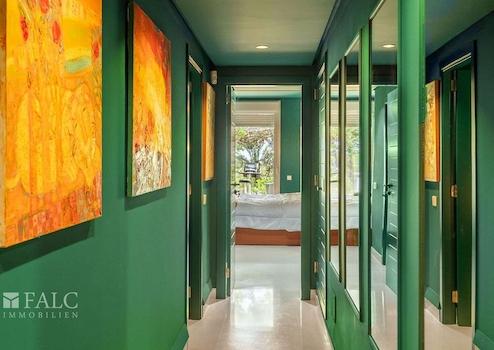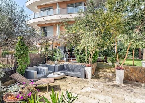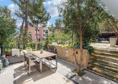 Das renovierte Apartment (letzte Renovierung vor zwei Jahren) bietet ein einzigartiges Design und verfügt über eine bebaute Fläche von ca. 180 m² (ca. 145 m² Wohnfläche), die sich wie folgt aufteilt: ein geräumiges Wohn-/Esszimmer mit offener, komplett ausgestatteter Küche, ein separates gemütliches Wohnzimmer mit Bioethanol-Kamin und Zugang zur beeindruckenden ca. 300 m² großen Terrasse mit üppiger Vegetation und Obstbäumen, drei Schlafzimmer mit Einbauschränken sowie zwei Badezimmer, eines davon en suite. Vom Hauptschlafzimmer und von der Terrasse aus genießt man einen fernen Meerblick.