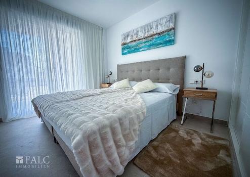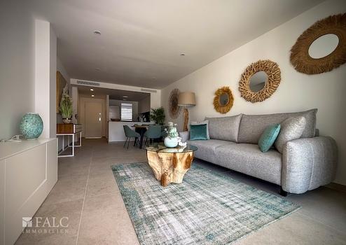Diese moderne Neubauwohnung beeindruckt durch ihre klare, zeitgemäße Architektur und eine hochwertige Bauausführung, die vom ersten Moment an ein Gefühl von Wohlbefinden vermittelt. Großzügige Fensterfronten durchfluten die Wohnräume mit natürlichem Licht und schaffen eine helle, freundliche Atmosphäre, die den mediterranen Charme der Umgebung perfekt aufgreift. Je nach Etage verfügt die Wohnung über einen sonnigen Balkon oder eine großzügige Terrasse, die den Wohnraum harmonisch nach draußen erweitert.