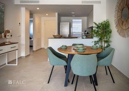 Die Wohnanlage selbst rundet das Gesamtbild perfekt ab. Ein gepflegter Gemeinschaftsgarten und ein attraktiver Gemeinschaftspool laden dazu ein, das mediterrane Klima in vollen Zügen zu genießen – ein idealer Ort zum Abschalten, Entspannen und für kleine Auszeiten im Alltag.