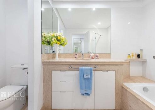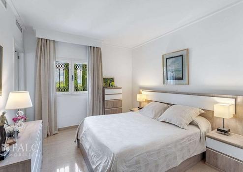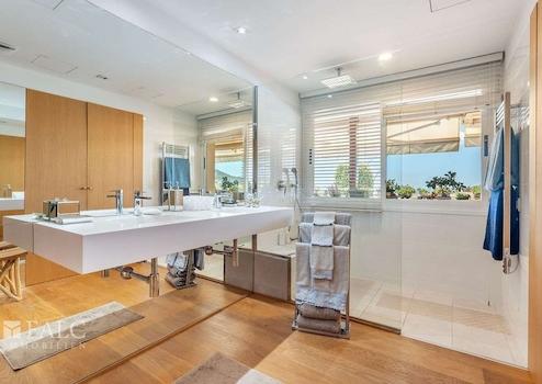 Insgesamt stehen vier Schlafzimmer mit jeweils eigenen Badezimmern zur Verfügung. Das Hauptschlafzimmer verfügt über ein Ankleidezimmer, Fußbodenheizung im Badezimmer sowie direkten Zugang zur Terrasse. Darüber hinaus bietet die Erdgeschosswohnung einen privaten und direkten Zugang zum Gemeinschaftspool.