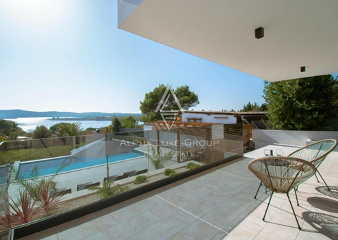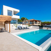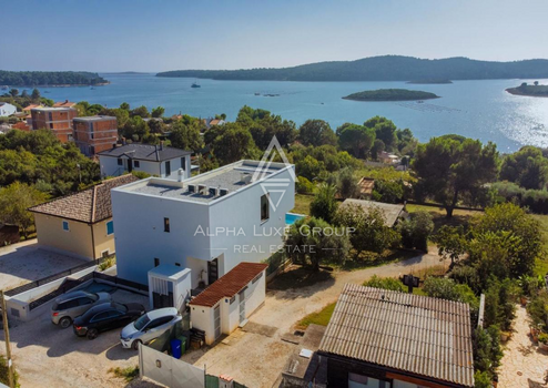 Nur 200 Meter von der Küste entfernt bietet diese elegante Villa mit 195 m² eine feine Kombination aus moderner Architektur, luxuriösem Komfort und wunderschönem Meerblick. Auf einem großzügigen Grundstück von 766 m² in einem ruhigen Teil von Pomer gelegen, bietet die Immobilie hervorragende Privatsphäre sowie hochwertige Außenbereiche, darunter einen privaten Pool, einen Wellnessbereich und große Terrassen.