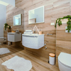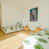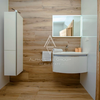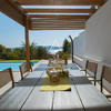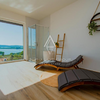 Das Obergeschoss, ebenfalls 97 m² groß, umfasst einen zentralen Flur, einen privaten Wellnessbereich mit Panoramaterrassen sowie drei elegant gestaltete Schlafzimmer. Jedes verfügt über ein eigenes Badezimmer und eine private Terrasse mit offenem Ausblick. Die Master-Suite bietet zudem einen begehbaren Kleiderschrank und eine Terrasse mit Whirlpool.
