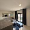 Die Wohnung S5 mit einer Gesamtnutzfläche von 65,36 m² ist nach Südosten ausgerichtet. Sie verfügt über zwei Schlafzimmer, einen Flur, ein Badezimmer, eine Küche mit Esszimmer und ein Wohnzimmer mit Zugang zu einer großzügigen, überdachten Loggia. Zur Wohnung gehören zwei Parkplätze im Innenhof. Die Wohnung ist voll möbliert und bezugsfertig.