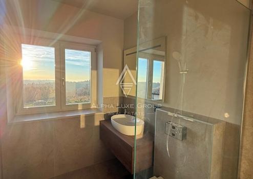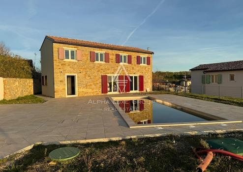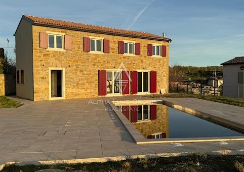 Nur zehn Minuten von Momjan entfernt, nahe der slowenischen Grenze, befindet sich dieses wunderschön gestaltete traditionelle istrische Steinhaus mit 130 m² Wohnfläche und einem großzügigen, gepflegten Grundstück von 1.000 m². Das Erdgeschoss verfügt über einen offenen Wohnbereich mit moderner Küche und Esszimmer, einen Hauswirtschaftsraum sowie ein Badezimmer. Im Obergeschoss befinden sich drei geräumige Schlafzimmer, jedes mit eigenem Badezimmer, was zusätzlichen Komfort und Privatsphäre für Bewohner und Gäste bietet.
