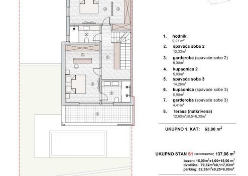Der Baubeginn eines modernen Wohnobjekts mit drei Reihenwohneinheiten ist für den Winter 2026 geplant. Die Immobilie befindet sich in einer neuen Wohnzone von Vodice, in ruhiger Lage, 800 m vom Strand und m vom Stadtzentrum entfernt.