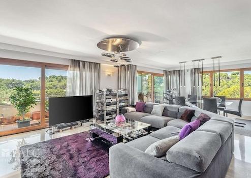 Die Lage ist äußerst attraktiv – auf der Spitze eines Hügels, nur wenige Autominuten von wunderschönen Stränden, herrlichen Badebuchten mit türkisfarbenem Wasser und dem renommierten Golfplatz von Bendinat entfernt. Das Zentrum von Palma de Mallorca erreicht man in ca. 10 Fahrminuten.