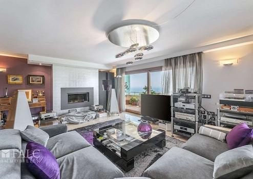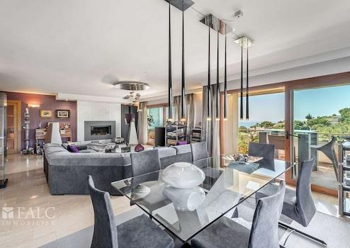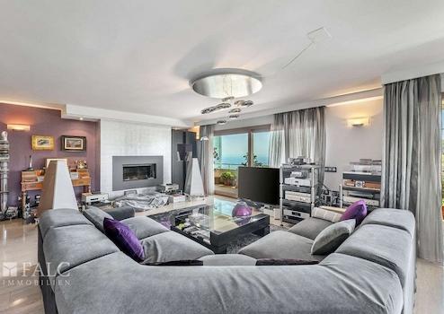 Die nach Süden ausgerichtete Wohnung verfügt über eine grosszügige bebaute Fläche von ca. 317 m² (davon etwa 240 m² Wohnfläche), die sich wie folgt aufteilen: Ein einladender Eingangsbereich führt in das sehr geräumige Wohn-/Esszimmer mit Kamin und Zugang zu einer ca. 50 m² grossen Terrasse mit Panoramablick auf die mediterrane Umgebung und das traumhafte Meer. Zudem gibt es eine grosse, komplett möblierte Küche, vier geräumige Schlafzimmer, drei Badezimmer, einen Hauswirtschaftsraum sowie ein Gäste-WC.