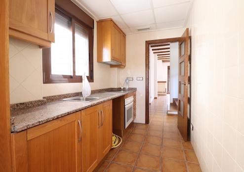 Der geräumige Wohnbereich verfügt über eine charakteristische Balkendecke, einen offenen Kamin und doppelte Glasschiebetüren, die zum Garten führen - und schafft so eine warme und einladende Atmosphäre. Eine Treppe vom Wohnzimmer führt in den ersten Stock. Die separate Einbauküche ist funktional und gut ausgestattet und verfügt über einen angrenzenden Hauswirtschaftsraum. Ebenfalls im Erdgeschoss befinden sich ein Doppelzimmer und ein modernes Duschbad. Im Obergeschoss befinden sich zwei weitere Doppelzimmer, beide mit Zugang zu Terrassen, von denen eine einen herrlichen Blick über die Zitrusplantagen und die nahe gelegenen Berge bietet. Ein Familienbadezimmer bedient diese Etage, und alle Schlafzimmer verfügen über Einbauschränke, wobei die gesamte Immobilie mit einer Klimaanlage ausgestattet ist. Eine Innentreppe bietet Zugang zum privaten Solarium, das sich ideal zum Entspannen oder zur Unterhaltung mit Panoramablick eignet.