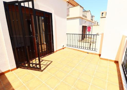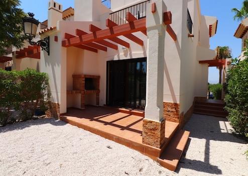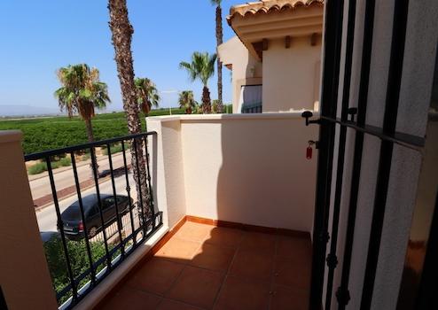 Diese 100 m² große DHH verfügt über einen Zugang von vorne und hinten und bietet einen begehrenswerten Ausblick auf den Golfplatz, die riesigen Zitrusplantagen und die Berge.