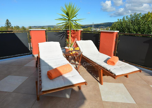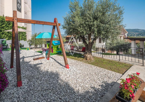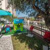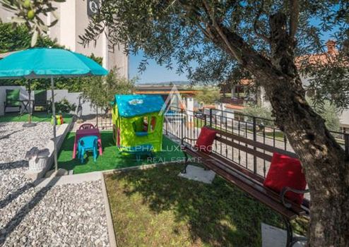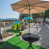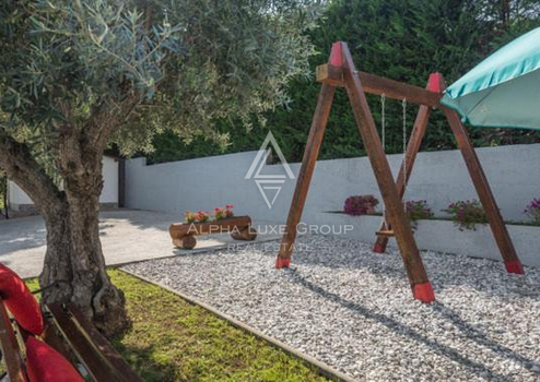 Der umzäunte Garten ist liebevoll mit mediterraner Vegetation angelegt und bietet eine ruhige Außenfläche mit Garage, Abstellraum und Kinderspielplatz. Dank seiner Aufteilung, der mehreren Wohneinheiten und der attraktiven Lage eignet sich die Immobilie ideal sowohl für touristische Vermietung als auch für Mehrgenerationenwohnen.