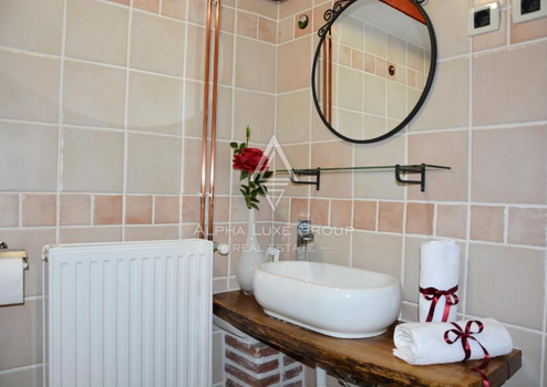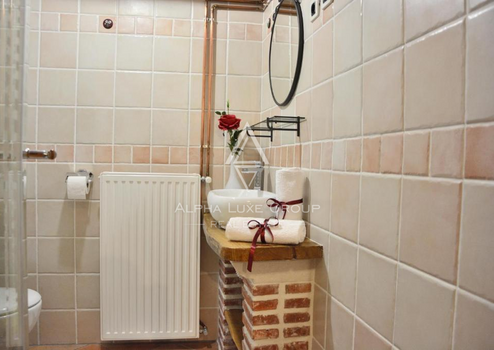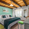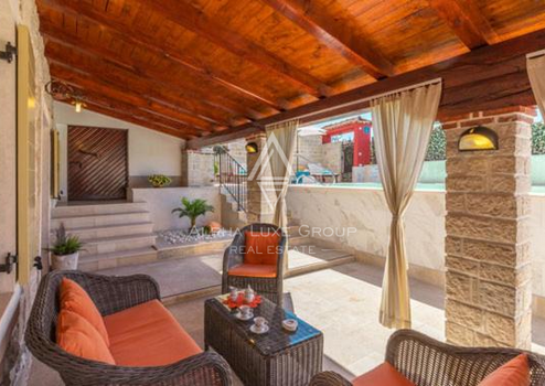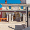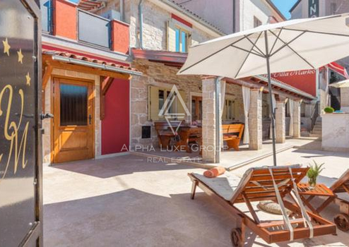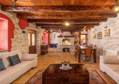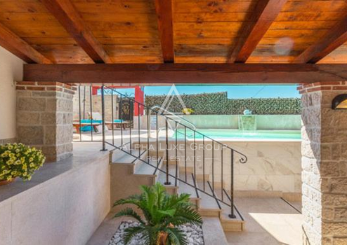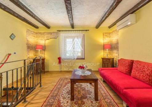 Ein Teil des Hauses ist ein wunderschön restaurierter Steinabschnitt, der sich über das Erdgeschoss und den ersten Stock erstreckt. Mit großer Sorgfalt renoviert, um den authentischen istrischen Charakter zu bewahren, vermittelt er eine warme Atmosphäre mit Holzakzenten und Natursteindetails. Diese Einheit umfasst ein helles Wohnzimmer, eine Küche mit Essbereich, ein Gäste WC, drei Schlafzimmer, ein Badezimmer und eine große überdachte Terrasse, die auf einen gepflasterten Innenhof mit direktem Zugang zum Pool führt.