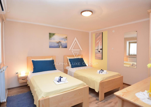 Der größere Hausteil wurde ursprünglich in den 1970er Jahren erbaut, regelmäßig gepflegt und teilweise modernisiert. Er besteht aus drei eigenständigen Wohneinheiten. Die Einheit im Erdgeschoss verfügt über eine Küche, ein Esszimmer, einen Wohnbereich, ein Schlafzimmer und ein Badezimmer. Die Einheit im ersten Stock bietet ein offenes Wohnkonzept mit Küche, Essbereich und Wohnzimmer mit Balkonzugang sowie drei Schlafzimmern, einem Badezimmer und einem Gäste WC. Die Dachgeschosswohnung umfasst zwei Schlafzimmer, ein Badezimmer, ein Gäste WC sowie einen gemütlichen Wohn und Essbereich mit Küche.