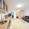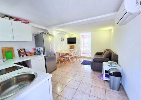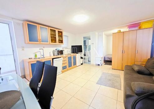 Im Erdgeschoss befindet sich eine Wohnung mit Küche und Wohnzimmer, einem Schlafzimmer, Badezimmer und zusätzlichem Abstellraum. Eine Innentreppe führt ins Untergeschoss, wo sich die zweite Wohnung befindet, die über eine kleine Veranda verfügt und als großer offener Raum mit Küche, Wohnzimmer, Badezimmer, Schlafbereich und geschlossener Loggia gestaltet ist, was zusätzliche Privatsphäre und Komfort bietet.