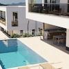 Die Villa erstreckt sich über drei Ebenen – Untergeschoss, Erdgeschoss und Obergeschoss – mit klar getrenntem Wohn-, Schlaf- und Freizeitbereich. Im Erdgeschoss befindet sich ein großzügiger Open-Space-Wohnbereich mit Küche und Essplatz, der sich natürlich auf eine große überdachte Terrasse erweitert und sich perfekt für das Leben im Freien eignet. Auf dieser Ebene liegen außerdem Eingangsbereich, Gäste-WC, Hauswirtschaftsraum sowie Abstellraum. Ein besonderes Plus ist die überdachte Sommerküche, die als zentraler Treffpunkt für gesellige Stunden konzipiert ist.