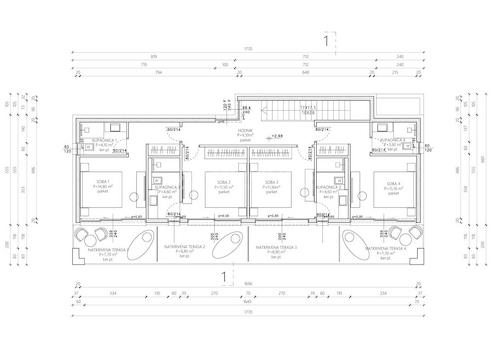 Im Obergeschoss befindet sich der Schlafbereich mit vier Schlafzimmern und vier Badezimmern. Jedes Schlafzimmer verfügt über Zugang zu einer eigenen überdachten Terrasse, was zusätzlichen Komfort und Privatsphäre gewährleistet. Die Raumaufteilung ist ideal für Familien oder Gäste.