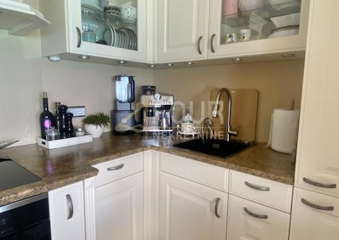 Unsere Wohnung, in einem Haus mit drei Wohneinheiten, befindet sich im ersten Obergeschoss des Hauses und ist in einem top gepflegten Zustand. Die 5-Meter Fensterfront sorgt für fantastischen Meerblick. Zur Verfügung stehen auf knapp 50qm ein Schlafzimmer, eine voll ausgestattete Küche mit angrenzendem Ess- und Wohnbereich, ein Bad mit Dusche/WC/Bidet und Waschmaschine sowie ein abschließbarer Kellerraum (Lager). Ein eigener Parkplatz direkt vor dem Gebäude