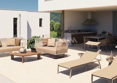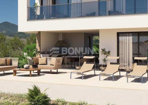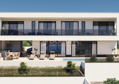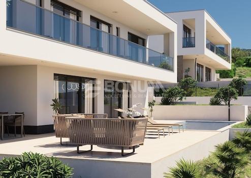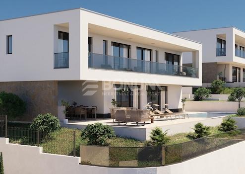 U der ruhigen und attraktiven Umgebung von Vinišće, unweit von Trogir, befindet sich eine moderne Villa, die für unbeschwerte Erholung und maximalen Genuss des mediterranen Lebensstils konzipiert wurde. Dank der erhöhten Lage bietet die Immobilie einen schönen Meerblick, während die zeitgemäße Architektur mit großen Glasfronten das Gefühl von Weite und Licht zusätzlich betont.