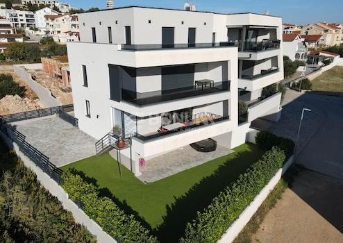 Zum Verkauf steht eine moderne und luxuriöse Wohnung in Vodice, im Erdgeschoss eines 2021 erbauten Neubaus. Die Wohnung befindet sich in ruhiger Lage, nur 300 Meter vom Meer entfernt und bietet Komfort, Privatsphäre und eine hohe Wohnqualität.