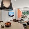 Grosszügiger, offener Wohnbereich mit Bang & Olufsen Soundsystem, raumhohen Fenstern und stilvollem Essbereich