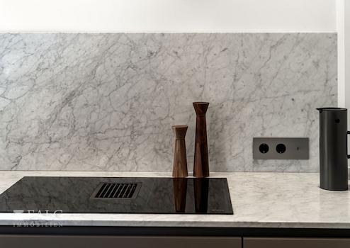 Gris Zarci Naturstein in Bädern, auf Arbeitsflächen und der Terrasse