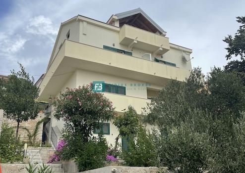 Das Einfamilienhaus mit einer Gesamtfläche von 382,60 m2 wurde auf einem Grundstück von 547 m2 errichtet. Es besteht aus 4 Etagen: Keller + Hochparterre + 1. Stock + Hochdachgeschoss. Der Keller mit einer Gesamtfläche von 45 m2 besteht aus zwei separaten Räumen, davor befindet sich eine Terrasse von 17,60 m2 mit Blick auf das Meer. Eine Außentreppe führt in das obere Erdgeschoss mit einer Bruttofläche von 110 m2, das aus einer Eingangshalle, einem Badezimmer, zwei großen Schlafzimmern, einem Wohnzimmer mit Zugang zu einer Terrasse von 12,80 m2, einer Küche mit Essbereich besteht Zimmer mit Zugang zu einer Terrasse von 18,50 m2. Aufgrund der hervorragenden Lage bietet die Terrasse einen Blick auf das Meer und die Stadt. Über die Innentreppe gelangt man in die 1. Etage mit einer Gesamtfläche von 110 m2, die aus 3 Studio-Apartments und 1 Apartment von ca. 35 m2 besteht. Alle Wohnungen sind modern eingerichtet und komplett ausgestattet (Klimaanlage, TV) und bereit, das etablierte Geschäft weiterzuführen. Das hohe Dachgeschoss mit einer Gesamtfläche von ca. 100 m2 ist unvollendet und in der Rohbauphase, die Terrasse bietet einen Panoramablick auf das Meer und die Inseln.
