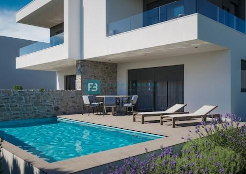 Ein neues Projekt mit ansprechendem Design und funktionaler Raumaufteilung. Für den Bau werden hochwertige Materialien verwendet und erstklassige Ausstattung installiert: 10 cm dicke Polystyrolfassade, Sicherheitseingangstür, hochwertige Schreinerarbeiten, Hebe-Schiebewände, elektrische Rollläden, integrierte Insektenschutzgitter, elektrische Fußbodenheizung in Bädern und Wohnzimmer, Klimaanlage in allen Räumen, moderne Badezimmerausstattung, hochwertige Keramikfliesen und Glasgeländer. Geplanter Fertigstellungstermin und Einzug: Herbst 2026.