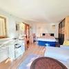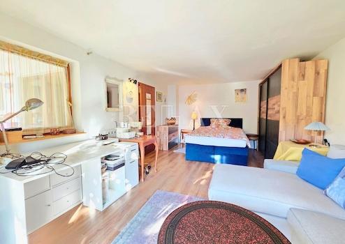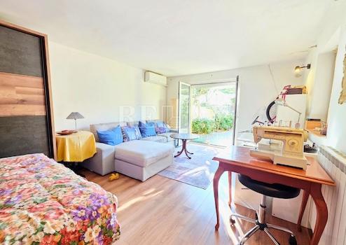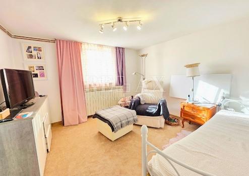 Im Untergeschoss befindet sich eine Wohnung mit einer Fläche von 87,87 m² mit Zugang über eine verglaste Veranda. Von der Veranda gelangt man in den Schlafbereich, der mit einem zusätzlichen Raum verbunden ist, der zu einem geräumigen begehbaren Kleiderschrank umfunktioniert wurde. Es gibt auch eine Küche, ein Badezimmer und einen großen Raum, der Wohn- und Schlafbereich kombiniert und direkten Zugang zum Garten bietet.