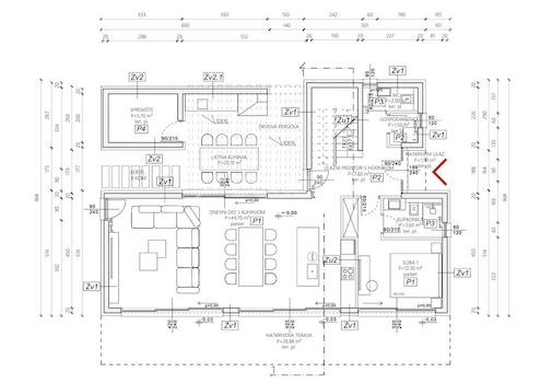 Die Villa erstreckt sich über drei Ebenen. Im Untergeschoss befindet sich ein großzügiger Freizeit-/Konobabereich – ideal für gesellige Abende, Spiel und zusätzliche Inhalte. Das Erdgeschoss ist als offener Wohnbereich mit Küche und Wohnzimmer gestaltet und wird durch ein zusätzliches Schlafzimmer und Bad, ein separates Gäste-WC sowie praktische Nebenräume ergänzt. Der Wohnbereich öffnet sich zur überdachten Terrasse, zum Sonnendeck und zum Pool; die überdachte Sommerküche schafft den perfekten Rahmen für Essen und Treffen im Freien.
