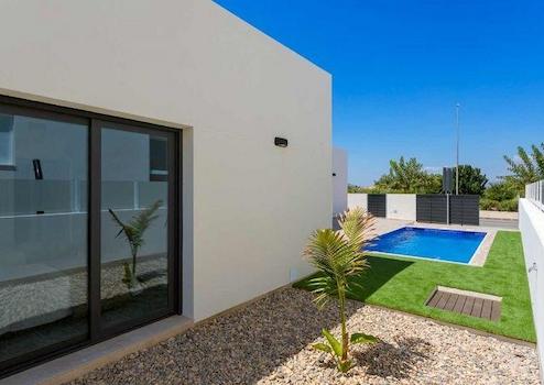 MEDITERRANE LEBENSQUALITÄT AUF EINER EBENE~~Das Dorf Daya Nueva ist die perfekte Kombination aus einem ruhigen und komfortablen Landleben und den pulsierenden Küstenorten der Costa Blanca, die nur eine kurze Autofahrt entfernt liegen.~~Diese neu gebauten Doppelhaushälften und freistehenden Villen wurden mit viel Liebe zum Detail entworfen und mit einem hohen Maß an Detailgenauigkeit gebaut. Alle Villen werden über einen eigenen Pool verfügen.~~IHR EIGENER WOHNRAUM, ALLES AUF EINER EBENE~Das Design zeichnet sich durch ein helles, frisches und modernes Konzept aus.~~Die Villen befinden sich in einem kleinen Dorf im Süden der Provinz Alicante. Der Ort heißt Daya Nueva.~~Neubau-Villen auf einer Ebene im neuen Teil von Daya Nueva. Nur wenige Gehminuten vom Dorfzentrum entfernt. Die Immobilie verfügt über 3 Schlafzimmer, 2 Badezimmer und einen 18 m2 großen privaten Pool. Wohn-/Esszimmer mit doppelter Deckenhöhe, offene Küche, Tageslicht und Option für eine Sonnenterrasse gegen Aufpreis. Das Hauptschlafzimmer verfügt über einen begehbaren Kleiderschrank und ein eigenes Bad.~~Das Haus liegt in einer neuen und ruhigen Wohngegend, etwa 10 Minuten vom Strand La Marina del Pinet und Guardamar del Segura entfernt. Gute Anbindung an die Autobahn A-70 und etwa 25 Minuten vom internationalen Flughafen Alicante entfernt.