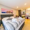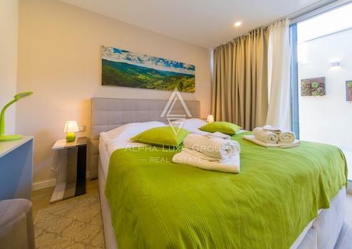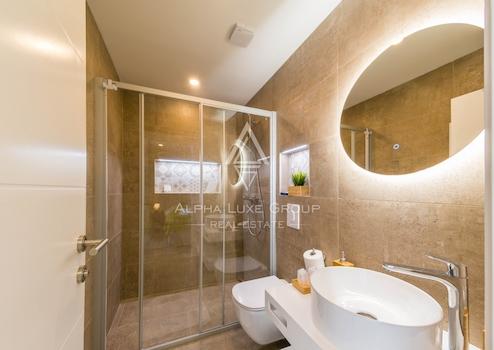Im Untergeschoss befinden sich vier Schlafzimmer, jeweils mit eigenem Bad, ein Technikraum sowie überdachte und offene Atrien, die für zusätzliches Licht und Privatsphäre sorgen.