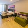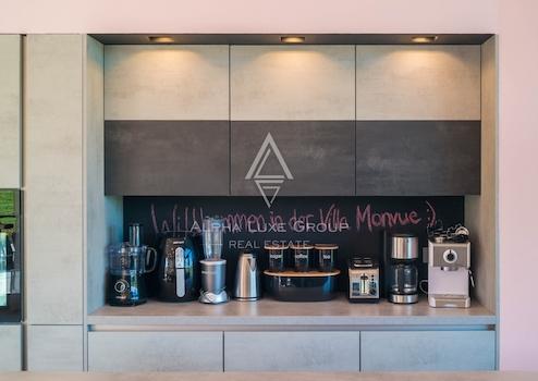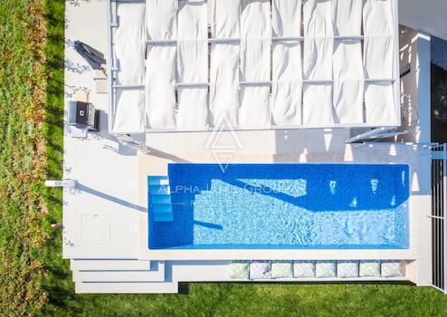Vom Wohnbereich gelangt man auf eine Terrasse mit einem 22 m² großen, beheizten Pool. Daneben befinden sich ein Grill, ein Fernseher und ein komplettes Soundsystem – der ideale Ort zum Entspannen und geselligen Beisammensein. Ein Kinderspielzimmer bietet der Villa zusätzlichen Komfort für die ganze Familie.