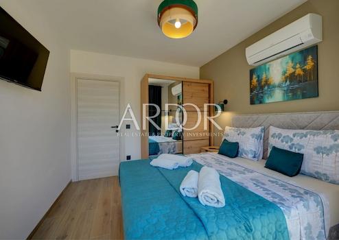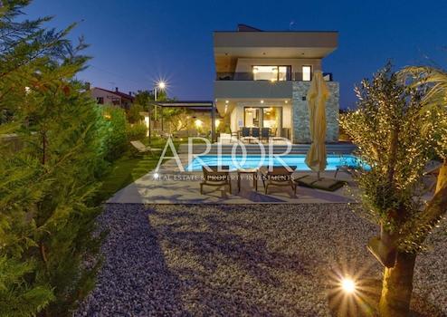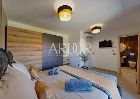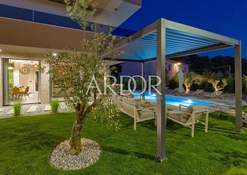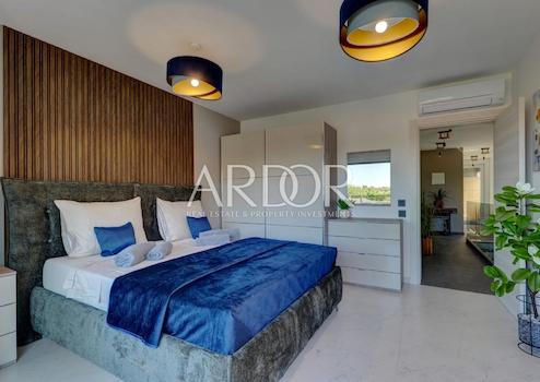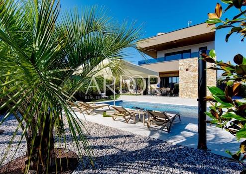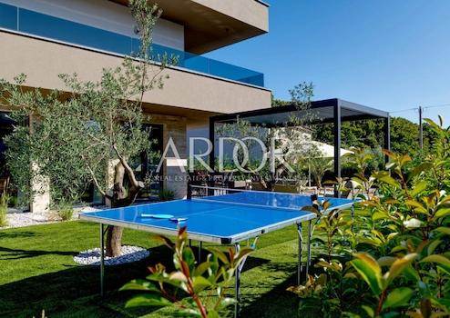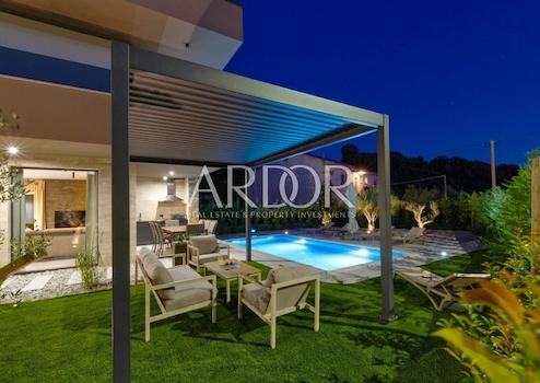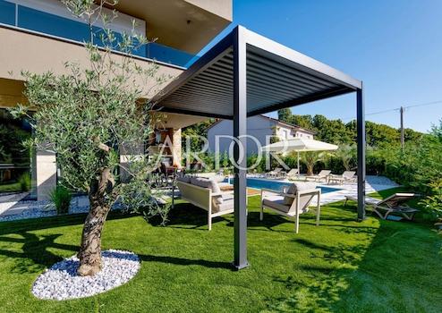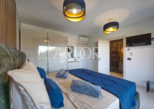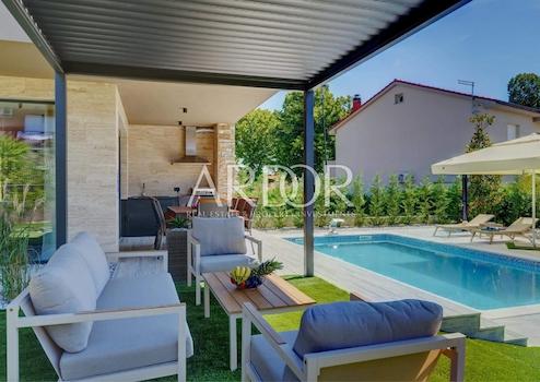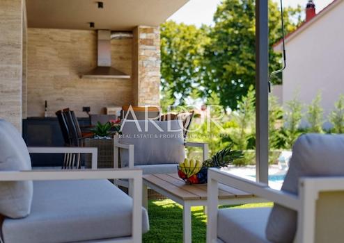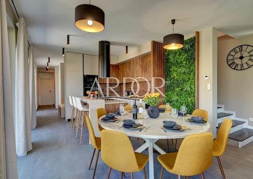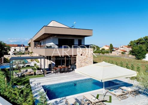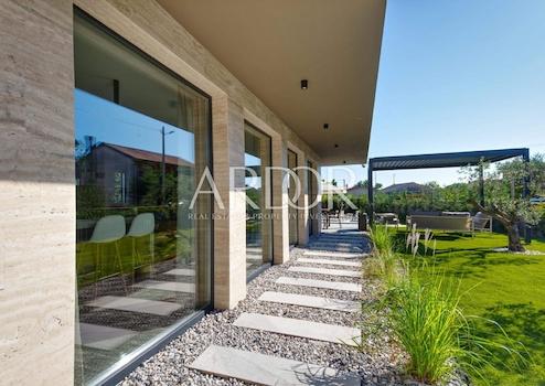 Zum Verkauf steht eine Luxusvilla in Istrien – ein moderner Neubau, der herausragende Architektur, Funktionalität und Eleganz vereint. Sie erstreckt sich über 200 m² Wohnfläche und steht auf einem 600 m² großen Grundstück. Das sorgfältig gestaltete Gebäude erfüllt hohe Ansprüche an Qualität und Komfort. Es wurden nur die besten Materialien verwendet, darunter Dreifach-Isolierglas und eine Fußbodenheizung, die höchste Energieeffizienz und ganzjährig angenehmen Aufenthalt garantiert.