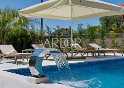 Der Außenbereich ist ebenso beeindruckend – ein angelegter Garten mit Swimmingpool und Whirlpool lädt zum Sonnenbaden und Entspannen ein. Eine großzügige Terrasse und eine Außenküche laden zu unvergesslichen Zusammenkünften im Freien ein, während eine speziell gestaltete Kinderecke diese Villa zur perfekten Wahl für Familien macht.