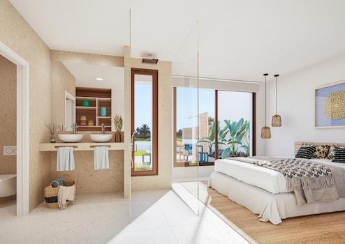 Diese exklusive Villa mit Keller bietet drei komfortable Schlafzimmer, zwei moderne Badezimmer, einen privaten Swimmingpool sowie einen Stellplatz auf eigenem Grundstück und ist mit hochwertigen Einbauschränken ausgestattet. Sie vereint modernes Design, Funktionalität und hochwertigen Wohnkomfort in einer durchdachten Architektur, die ein entspanntes und stilvolles Wohnen ermöglicht.