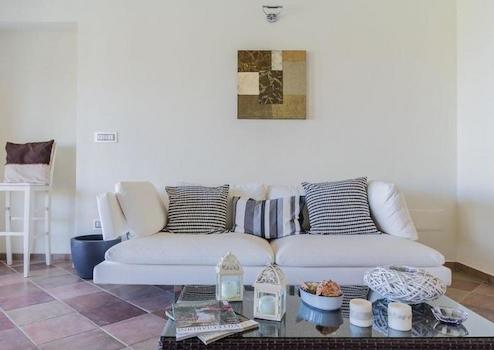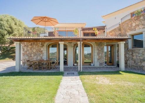Die Villa mit einer großen Fläche von 500 m² wurde mit freiliegenden Steinen und Felsen nach den charakteristischsten Merkmalen der Architektur der oberen Gallura erbaut und ist von einem englischen Garten umgeben, der sich über 2300 m² erstreckt, zusätzlich zu einem landwirtschaftlichen Grundstück von 27.000 m² .